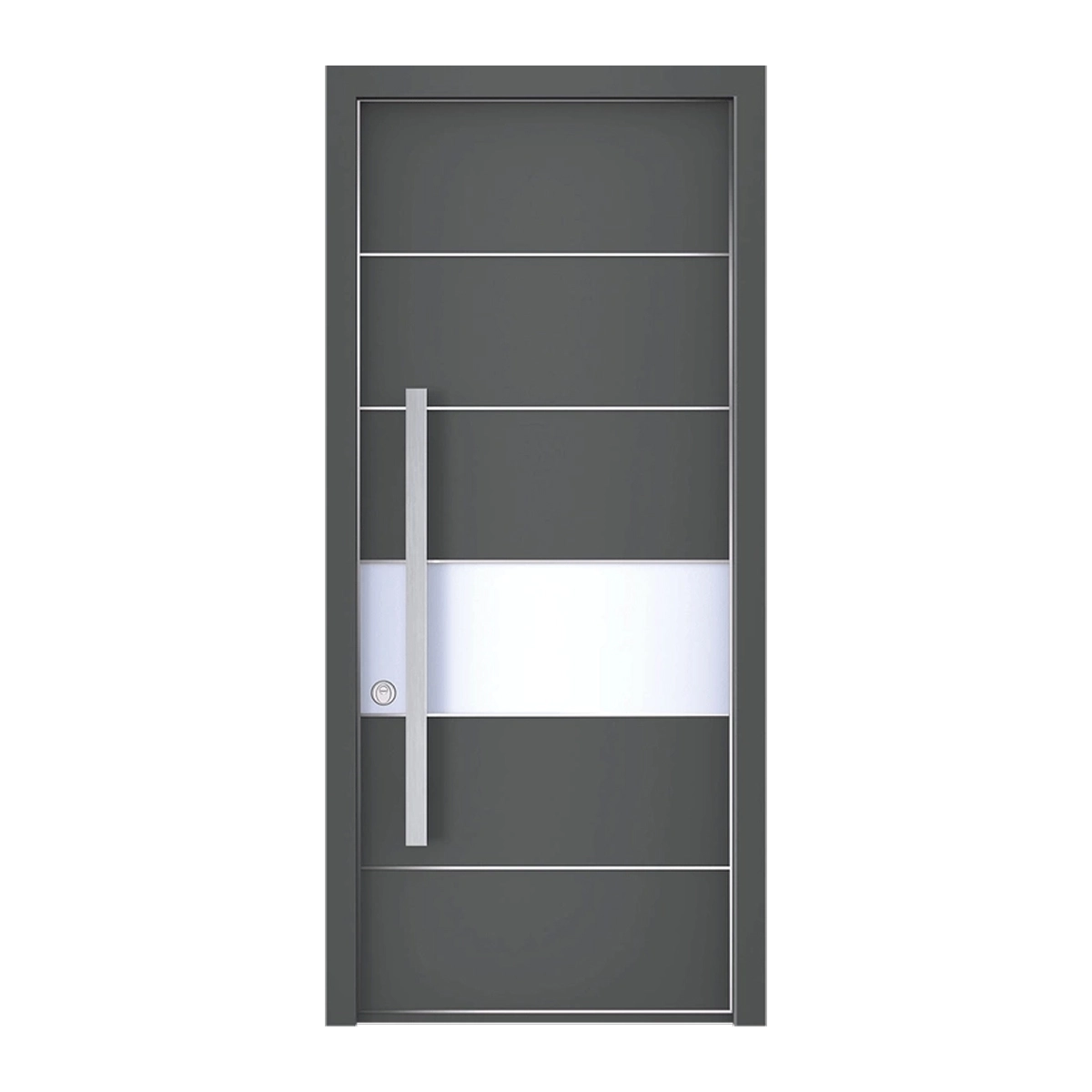 דלת כניסה דגם 1086 מסדרת הייטק בעיצוב מודרני עם קווים אופקיים ופס מרכזי מודגש. שילוב של גימור כהה, אלמנט מתכתי ונוכחות טכנולוגית לכניסה יוקרתית וחדשנית.
