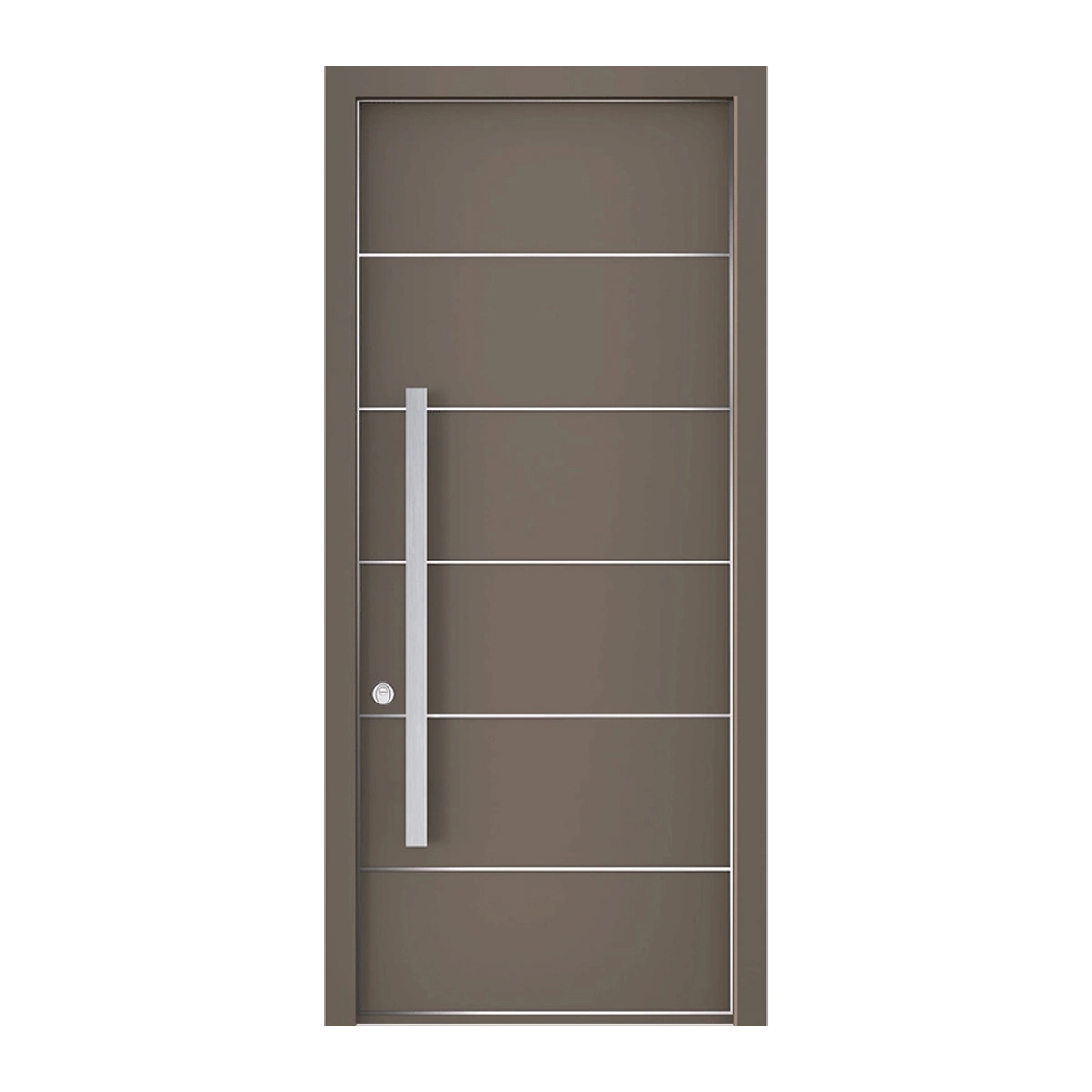 דלת כניסה דגם 1097 מסדרת הייטק בעיצוב מודרני עם קווים אופקיים נקיים וידית אנכית מודגשת. שילוב של מינימליזם, דיוק וטכנולוגיה עיצובית לכניסה יוקרתית ומרשימה.