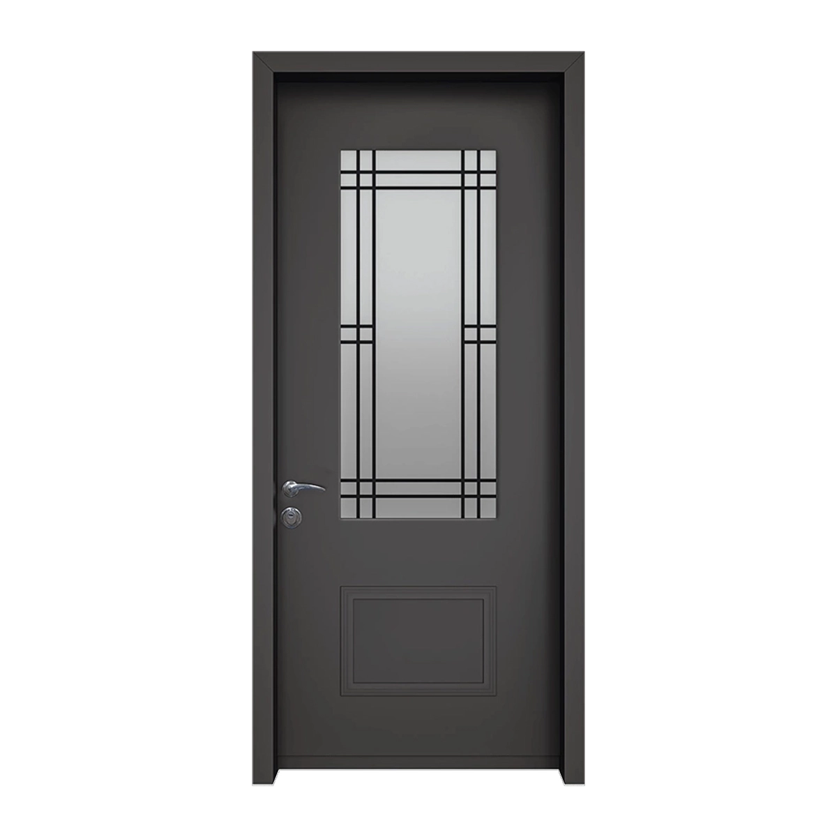 דלת כניסה דגם 3003 מסדרת חלונות בעיצוב קלאסי עם חלון מרכזי בקווים גיאומטריים מדויקים. גימור כהה אלגנטי בשילוב אור טבעי לכניסה מודרנית עם נוכחות יוקרתית וברורה.