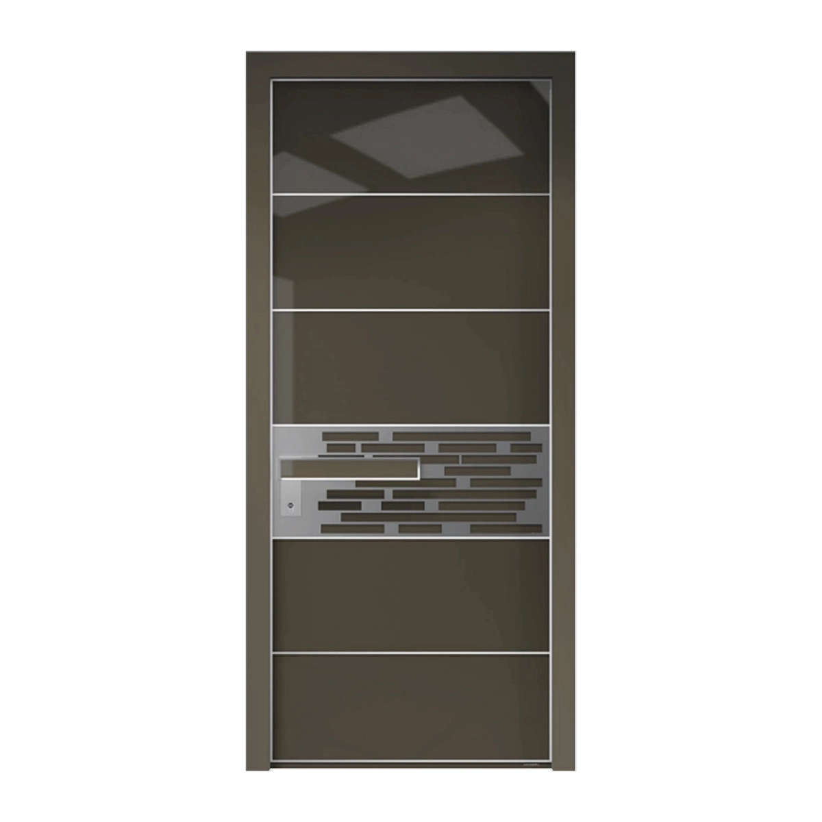 דלת כניסה דגם 1059 מסדרת יהלום עם פס דקורטיבי מרכזי בעיצוב גאומטרי ייחודי. שילוב של מודרניות, טקסטורה עשירה ובטיחות גבוהה לכניסה מרשימה ובעלת אופי.