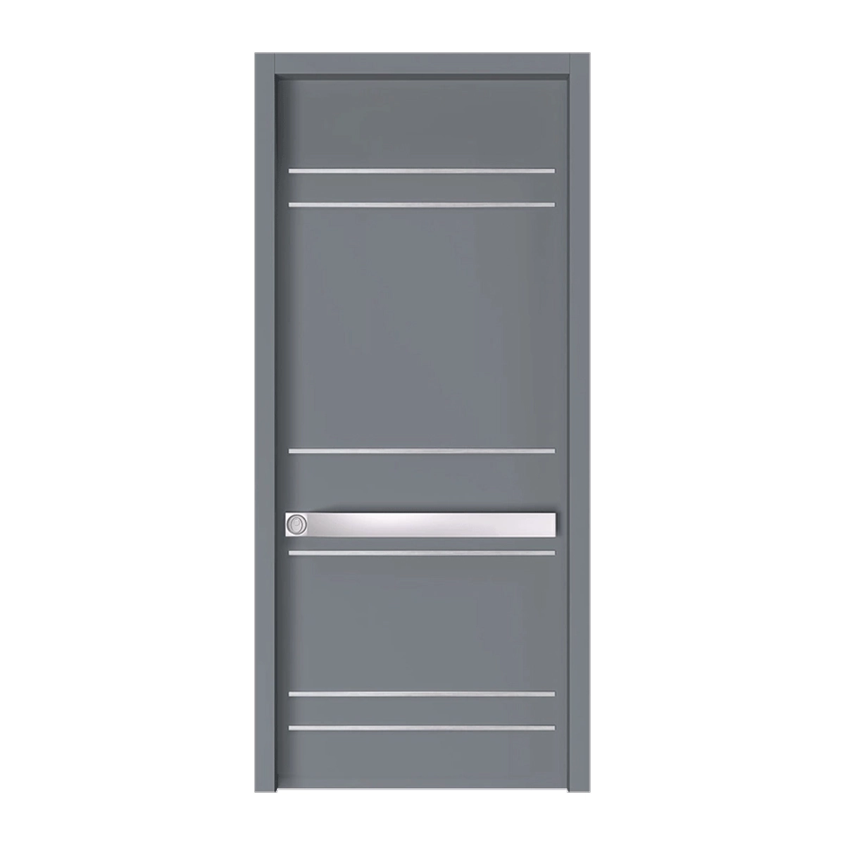 דלת כניסה דגם 2027 בעיצוב מודרני עם קווים אופקיים מודגשים וידית רחבה. הדלת משלבת עמידות גבוהה, בטיחות ומראה אלגנטי לבתים פרטיים.