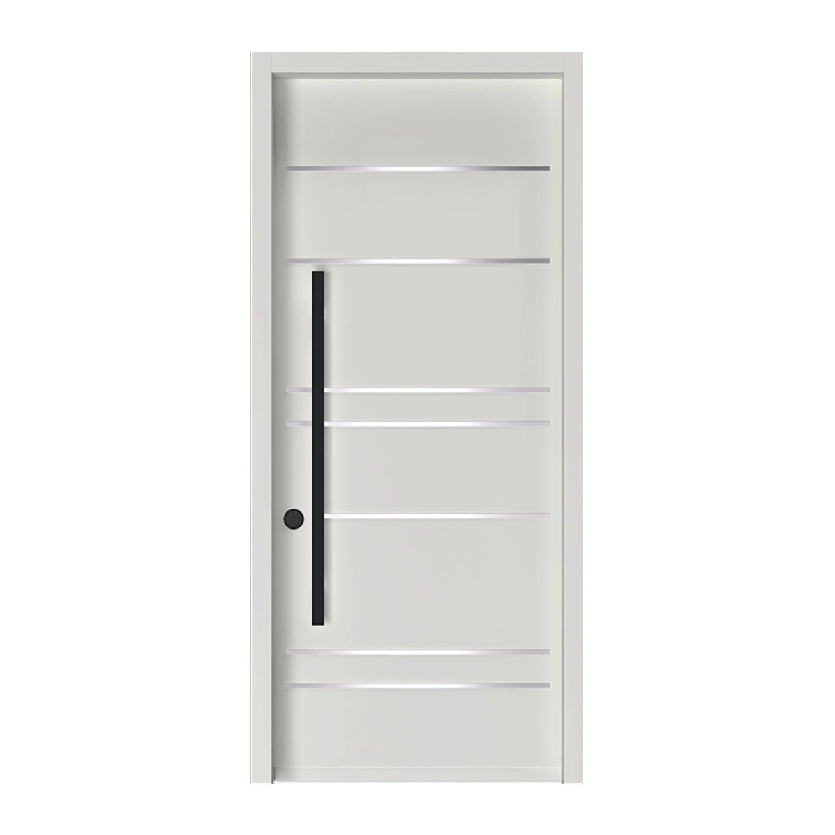 דלת כניסה דגם 2029 בעיצוב מודרני עם קווים אופקיים מודגשים ומראה נקי. הדלת משלבת עמידות גבוהה, בטיחות ומראה יוקרתי לבתים פרטיים.