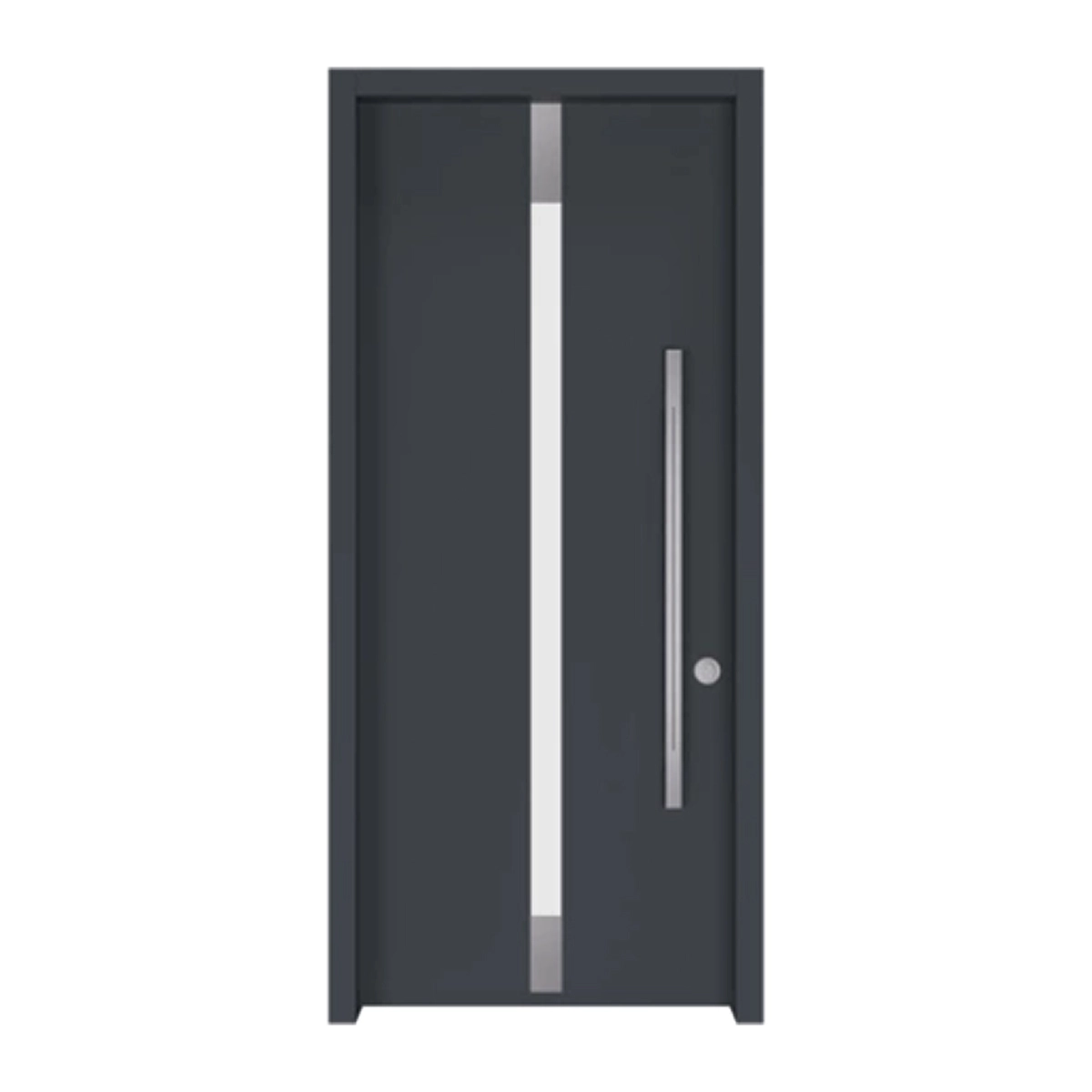 דלת כניסה דגם 7101 בעיצוב מודרני עם חלון אנכי מרכזי וקווים נקיים. הדלת משלבת עמידות גבוהה, בטיחות ומראה יוקרתי לבתים פרטיים.