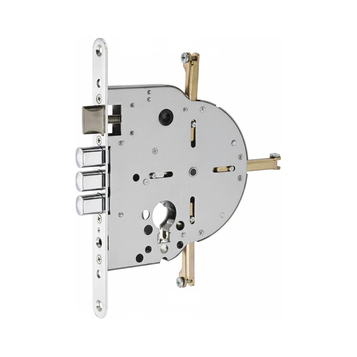 מנגנון לפלדלת עם 3 בריחים, פתרון אמין לנעילה בטוחה ונוחה לשימוש יומיומי.
